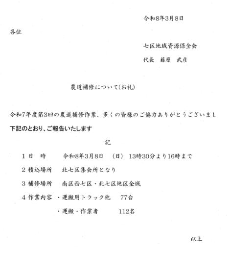 〇農道補修について(お礼)