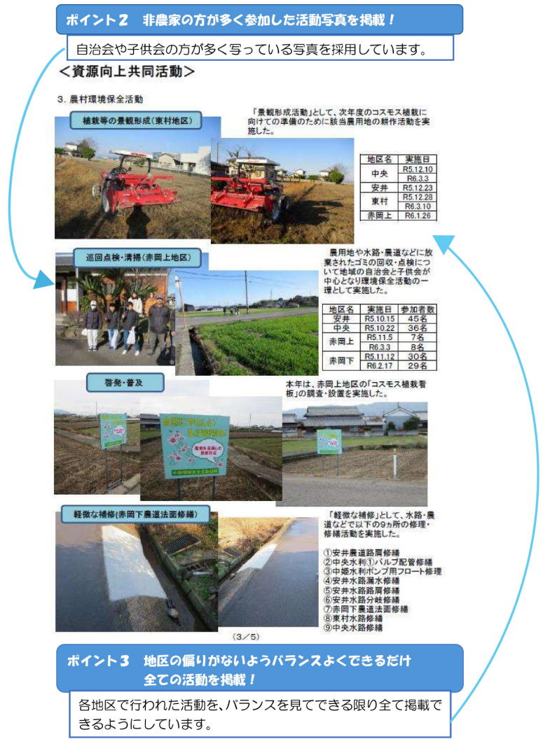 年2回、広報誌を作成し、活動の周知を図っています!自治会や子供会の方が写っている写真を活用することで、非農家の方にも関心を持ってもらえるようにしています!