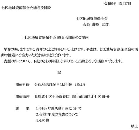 〇「七区地域資源保全会」役員会開催のご案内