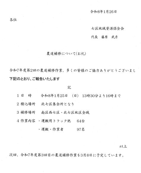 〇農道補修について(お礼)