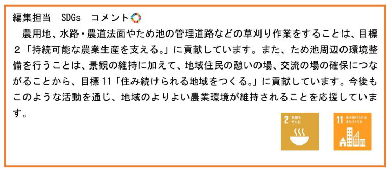 農業者と非農業者が一体になって、農道の草刈りや水路の泥上げなどを実施しています!また、地元の小学生と田植えを行うなど、地域に根付いた活動も行っています!
